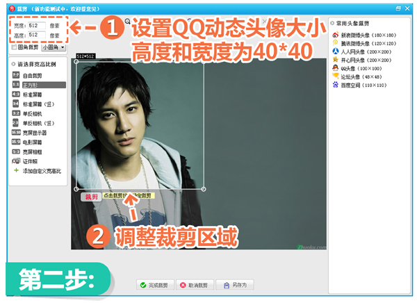 2.按照QQ动态头像的规格设定尺寸大小,然后完成剪裁。