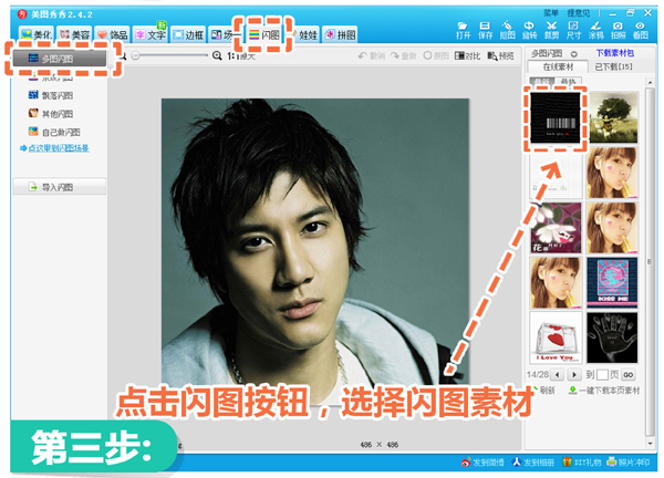 3.接下来很简单,只要进入“闪图”菜单,任意选择“多图闪图”中的一个喜欢的素材。
