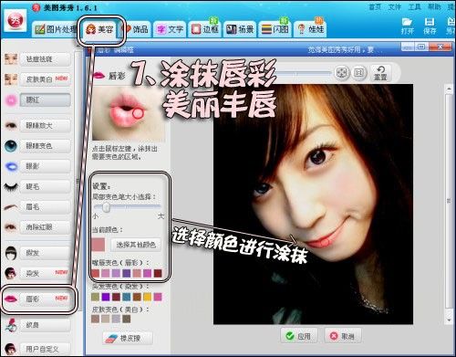 8、美容最后一步,给唇彩上色,色彩艳丽不说还有丰唇的效果哦。