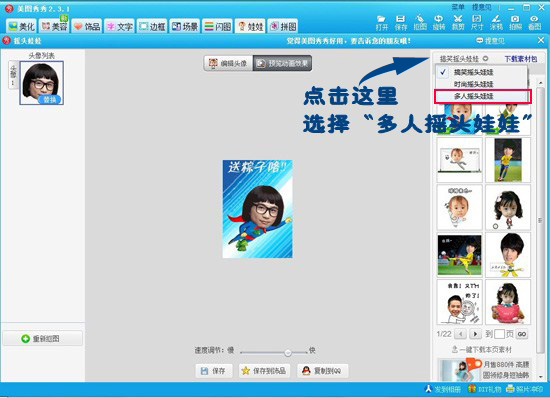 制作方法也差不多,在摇头娃娃编辑框里选择“多人摇头娃娃”类别。