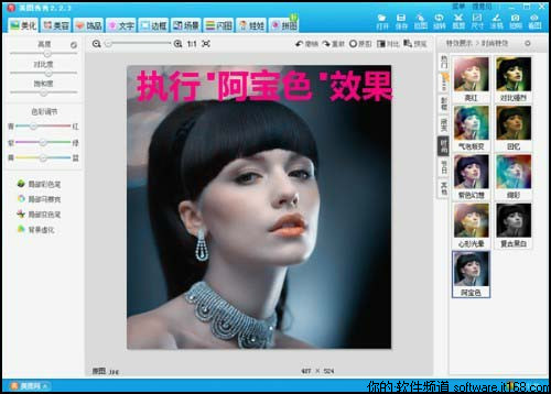 好!这时候前期工作基本做好了,执行“特效展示>时尚特效”标签下的“阿宝色效果”。