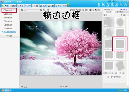 今天要教大家的是轻松打造自然融图边框,这是相机拍不了的哦,只能通过后期处理来实现,这里用到的是美图秀秀的一键撕边边框效果。效果看起来份外漂亮、和谐,做法也很简单,轻松两步搞定! 1.先来一个最简单最小白的操作,选择美图秀秀的“边框”菜单下的“撕边边框”,在右侧的素材库中选择一个喜欢的效果。 2.小编选择的这个边框看起来还是很适合这张横版图的,没有出现变形问题。如果用的是竖版的可能就会出现有点拉伸变形,所以提醒大家要注意边框和图片的匹配。