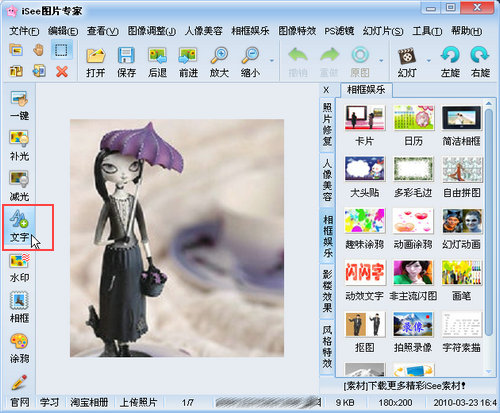 点击“右侧工具栏”—相框娱乐—非主流闪图。
