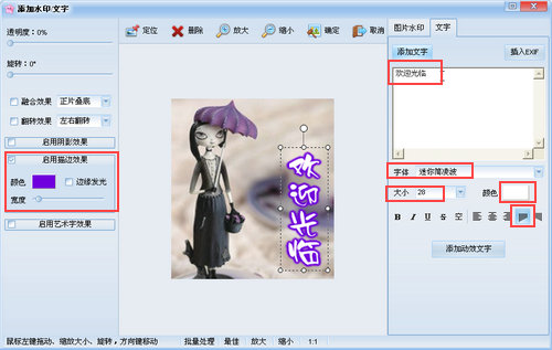 ⑶可以给文字加一些效果。这里启用了描边效果,选择好描边颜色和描边宽度。