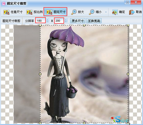 普通的淘宝店铺都会有店标。店标都显示在店铺首页的显现位置,买家在逛淘宝店的时候,一眼都会瞄到店标。因此,如果可以制作一个专属于自己店铺的店标,可以吸引买家的眼光,也更好地宣传了店铺。 下面就用iSee制作2种常见的店标。效果图如下: 1.静态店标 2.动态店标 注意:淘宝的店标建议是100x100px,大小限制在80KB以内。 现在就来看制作店标的步骤: 1.裁剪图片,使图片大小是100×100px。 用iSee软件打开图片。点击“上方的工具条”—裁剪。 进入裁剪的编辑界面。 选择裁剪方式:固定尺寸 输入固定尺寸数:100×100px。 然后用鼠标拉动虚线选取框,选择好需要做店招的图片范围,最后点击“确定”。图片就裁剪好了。 2.给图片添加个性文字。 裁剪好图片的尺寸之后,点击“左侧工具栏”—文字。