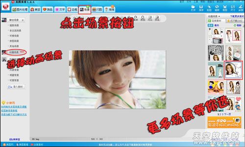 图3. 然后点击场景按钮选择动画场景功能,挑选你要的动画场景。