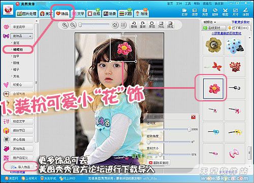 简单小饰品,装扮小宝宝,这可是细心的妈妈要学会的哦,赶快下载“美图秀秀”软件,试试吧!