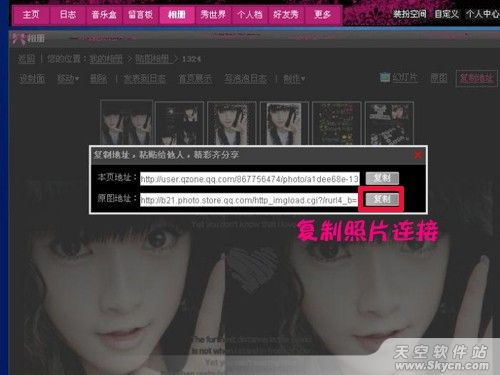 打开QQ空间,把刚才那张做好的照片上传到任意一个相册里,上传好后复制照片连接。