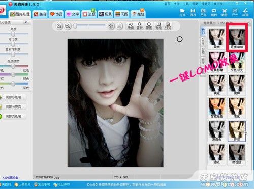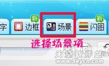 做完特效后在“场景”项里选择一个自己喜欢的场景,有非主流场景,可爱场景等等风格场景可以选择,感觉没自己喜欢的话到http://xiuxiu.meitu.com/sucai/下载最新的场景包。