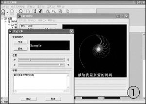 2. 添加字幕。点击右数第二个按键,弹出一个“添加字幕”对话框(如图1),先在“字幕框”输入文字,选择合适的字体和颜色,通过“上下左右”来调节字幕的位置,满意的话按“确定”就可以了。