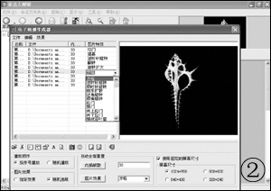 圈定图片后,选择“EXE或SCR(屏保)格式”,会弹出一个“电子相册生成器”对话框,这个对话框功能也很强大,主要是实现对图片顺序、效果和大小的设置(如图2),同样的,你可以通过点击“向上”或“向下”键来调整图片播放的顺序——有“随机播放”和“按序号播放”两种,包括选择图片的特效。“大眼睛”共提供了60种特效,包括最常用的“百叶窗、拉幕、淡出淡入”等等。从此,你的屏保不再需要其他软件复杂的设置,你也可以制作属于自己的个性屏保了。