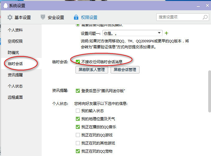 qq怎么屏蔽陌生人消息 qq怎么屏蔽临时会话