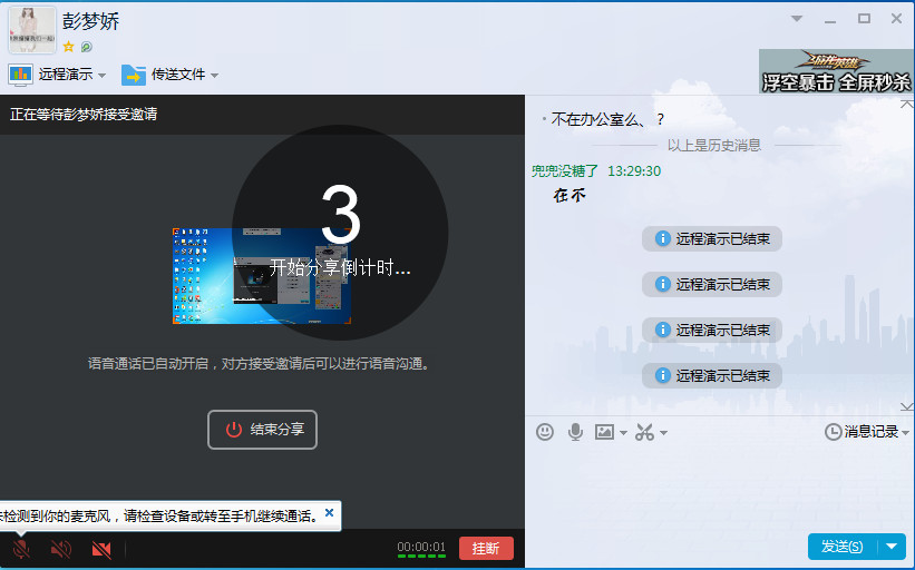 4、进行屏幕分享后点击“结束分享”