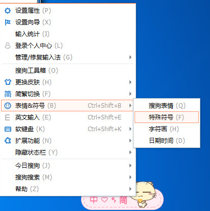 2、打开你的搜狗输入法,右击“表情&符号”特殊符号中的特殊符号