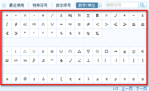 3、择“数学/单位”,选择你想要的上标