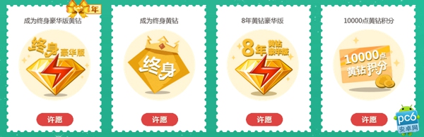 5、 用户包月业务包括黄钻、会员、蓝钻、绿钻、红钻,开通时长本身已经为2099年12月31日的部分用户,无法兑换至尊梦想及黄钻贵族类别终身黄钻,8年豪华版黄钻的奖品。