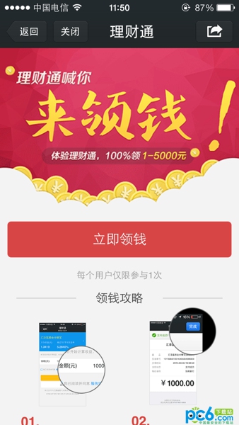 腾讯于今日凌晨微信理财通新上线“来领钱”活动,金额超过1元即可100%领取1-5000元现金奖励,下面是活动详细介绍。