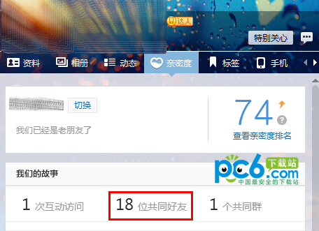 2.然后选择亲密度,就可以看到共同好友有多少个啦。不过此方法不知道共同好友具体是哪些。