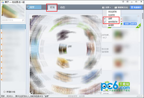 3.这时,选择QQ好友,并在右边勾选全部和按共同好友,就可以看到全部的QQ共同好友有哪些。