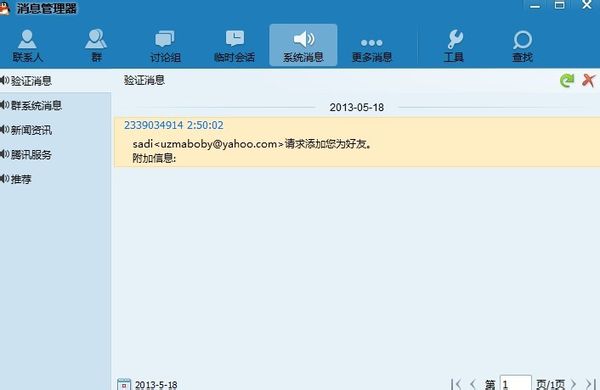 好了 现在就会出现别人加你的验证信息了 点右上角的叉叉就可以咯
