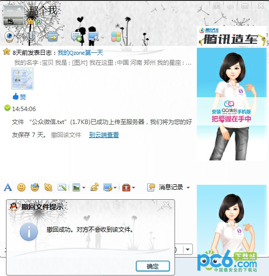 5. 如果对方真是离线状态,我们撤回该文件时,会提示我们“撤回成功,对方不会收到该文件。”