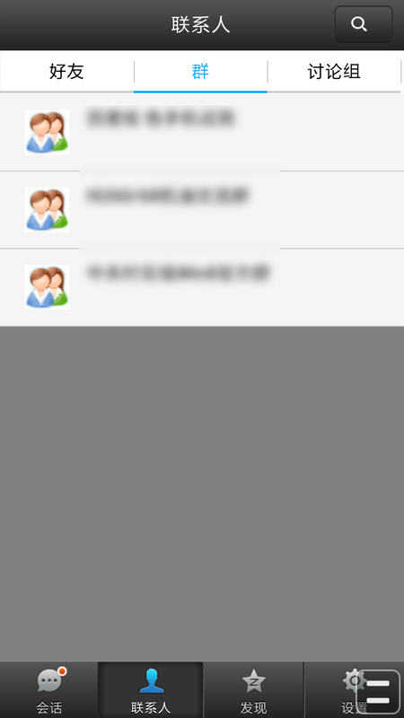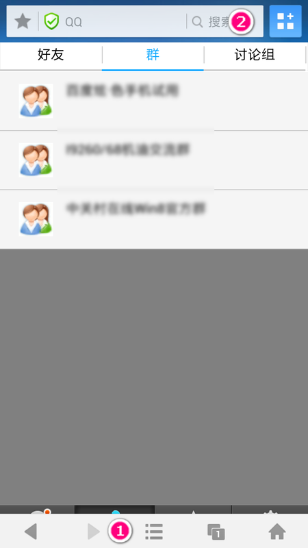 全屏之后,再看看效果,如果你不说你这个是手机QQ网页版,相信很多人第一眼都不能完全识别出来吧!?需要调用网页的时候,点击右下角的功能安装或者手机上的菜单键。联系人里含好友、群、讨论群,一项不少。