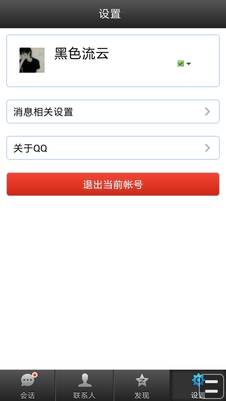 设置里,项目较少,只有两项:消息相关设置和关于QQ。