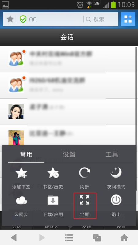 为了我们使用起来和手机版QQ无异,我们只需将网页“全屏”,就能感受到手机QQ那样的流畅。