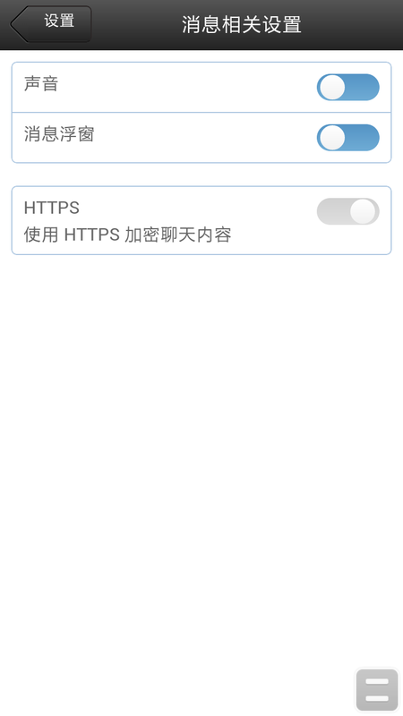 消息相关里,默认开启了声音和消息悬浮。还额外有一个HTTPS加密聊天功能,建议还是勾选上比较好!这个你懂的。