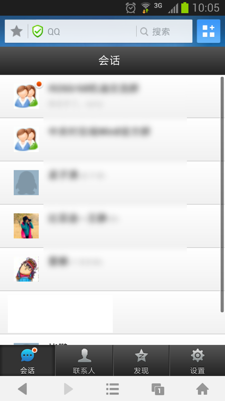 登陆之后和手机QQ类似,直接显示的是会话窗,底部四个我们熟悉的功能键!