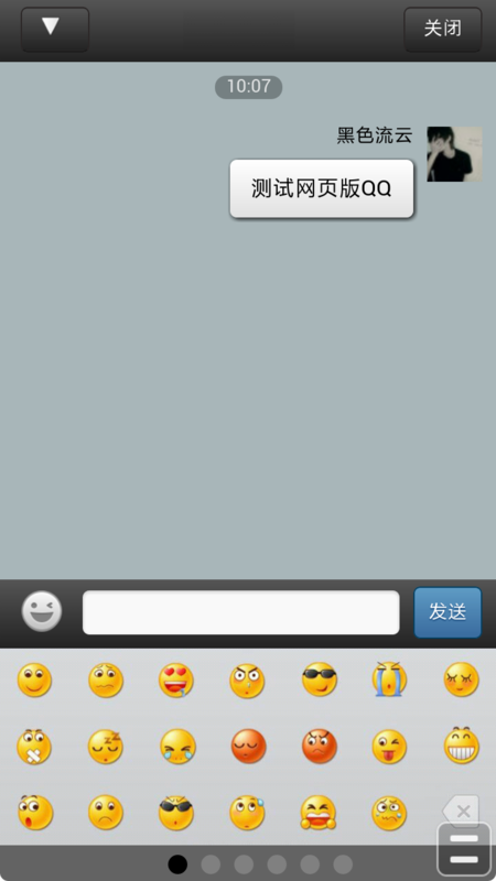 发布消息后的测试界面,支持表情发送哦,和我们手机QQ中的表情一模一样的。
