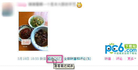 3.点击去看看,就会有自已发过的微博内容,微博内容下面会有一个阅读,点阅读就可以看到最近访客啦,不过只能看到一部分,不能看全部。