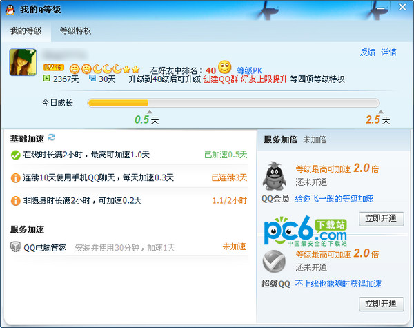 3、超级QQ加速(视等级而定)。