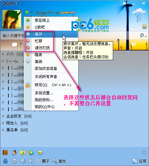 如果想自已设置回复语言的话就可以参照(qq2013怎么改自动回复:http://www.pc6.com//infoview/Article_60739.html)这个教程的步骤来操作。