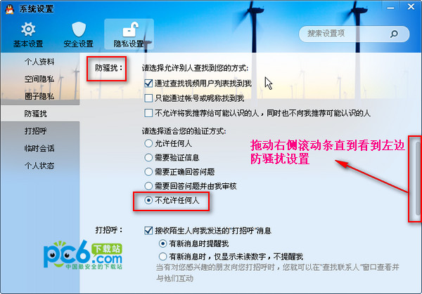 系统设置→隐私设置→防骚扰,就可以看到不允许任何人添加您为好友了!