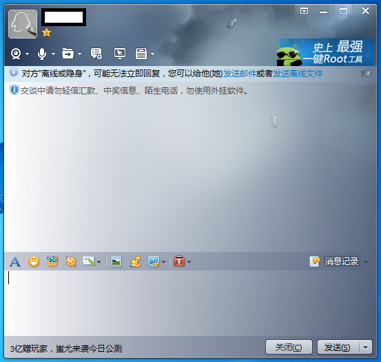 退出时,QQ2013主界面呈由下至上的渐变消失效果。