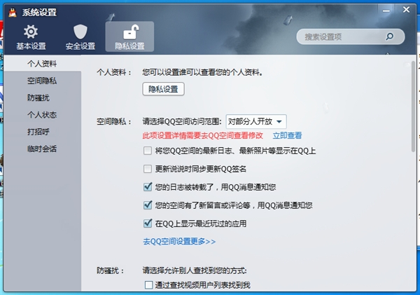 打开系统设置界面,可以看到基本设置、安全设置和隐私设置,操作界面更加简洁,方便操作。
