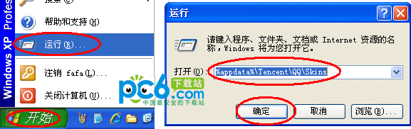 打开开始菜单,运行,输入:%appdata%\Tencent\QQ\Skins ,回车!