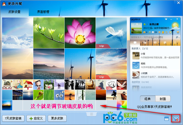 qq2013玻璃皮肤教程qq2013除了自带透明皮肤功能的外还有一个大家都比较喜欢的玻璃皮肤功能,相信很多童鞋们还没有发现这一功能吧!下面小编就来告诉大家qq2013玻璃皮肤教程。