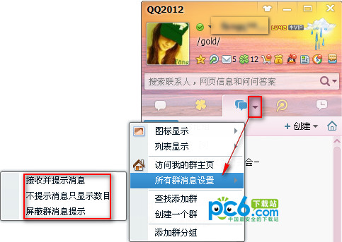 qq2012怎么屏蔽群消息