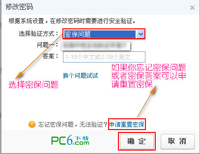 3.点修改密码后,如果你以前设过密保的话首先在改密码前要进行密保安全问题验证。