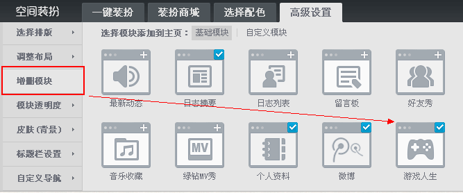 第四步:点击保存后,即可展示游戏人生Qzone模块。
