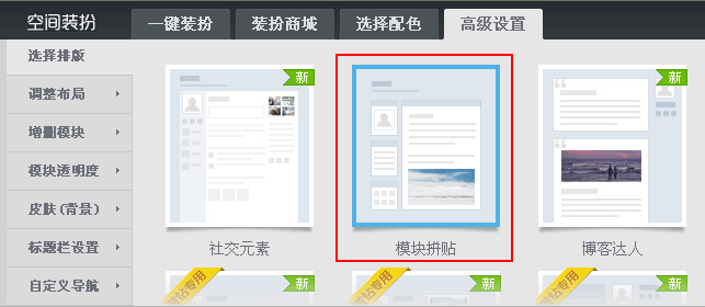 第二步:进入高级设置,选择模块拼接。