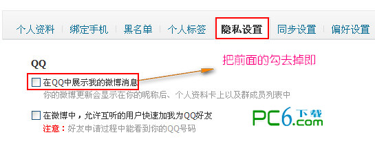 进入微博后看到右上角的设置,选择设置后再选隐私设置,再“在qq中展示我的微薄消息”把他的勾勾去掉。