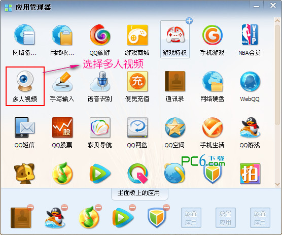 1.在qq主面板下面有个应用管理器,打开后选择多人视频。