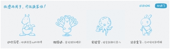 在导航栏写微博快捷按钮下方悬挂新功能提示小牌子,加上小清新的漫画介绍,还蛮有意思的。