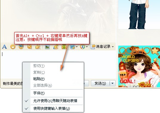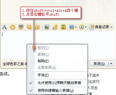 注意:按键顺序不能搞错,先按下 Alt , 再按下 Ctrl ,然后点击右键或其它菜单等,最后按下 A 键。可以抓取右键菜单、QQ菜单等。现在是不是就是QQ截图了,呵呵,大功告成。