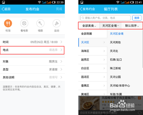接着点击—【地点】选择—【约会地点、和、吃什么美食】
