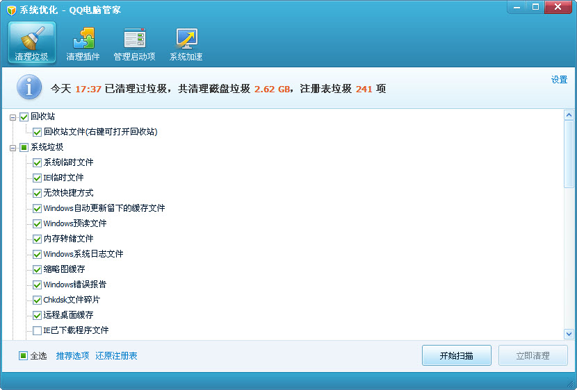 3、对系统进行优化、清理电脑上的垃圾让你的电脑运行更快。