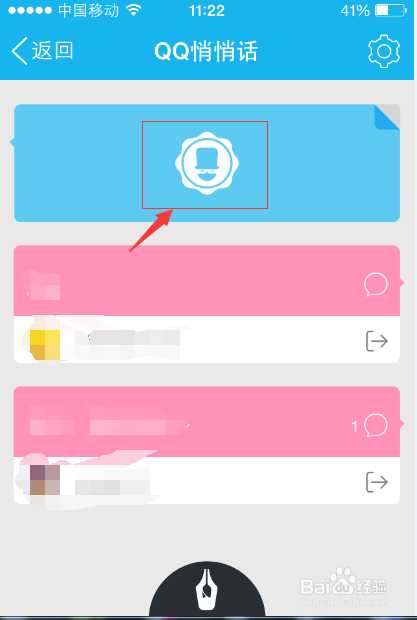 进入QQ悄悄话界面,可以看到损友刚刚给你发的消息,点击最上面的蓝色块,进入聊天记录区域。